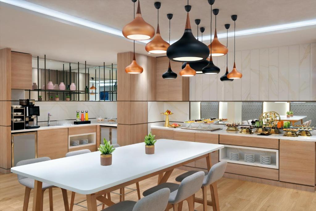 Mövenpick Hotel Tahlia Jeddah has a restaurant, outdoor swimming pool, a fitness centre and garden in Jeddah. With free WiFi, this 5-star hotel offers a kids’ club and a business centre. The accommodation offers a 24-hour front desk, room service and currency exchange for guests. Guests at the hotel can enjoy a continental or a buffet breakfast.