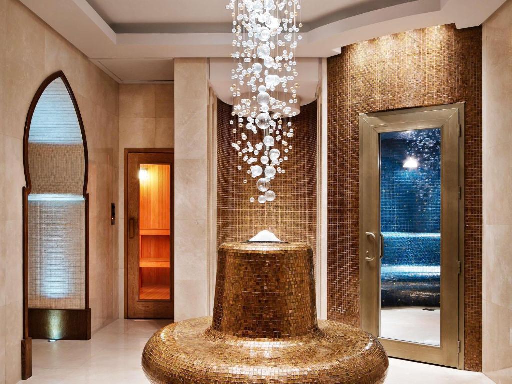 Each unit has a large living room and a private bathroom. The Raffles Makkah Palace serves a wide range of cuisine at 2 different restaurants. A tea lounge and ice cream-based café are also on the hotel grounds. The terrace overlooks the Grand Mosque and the Ka’aba. Guests can relax at Makkah Palace’s spa or work out in the separate male or female gym.